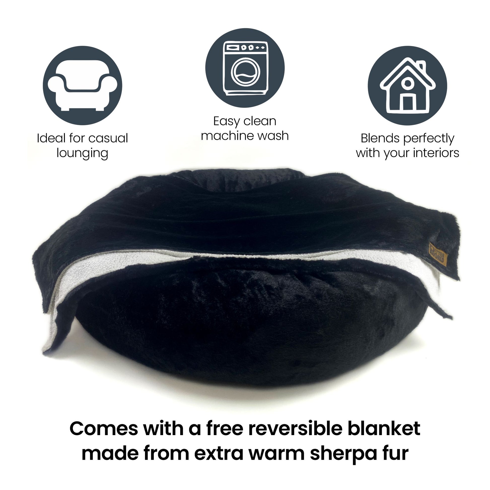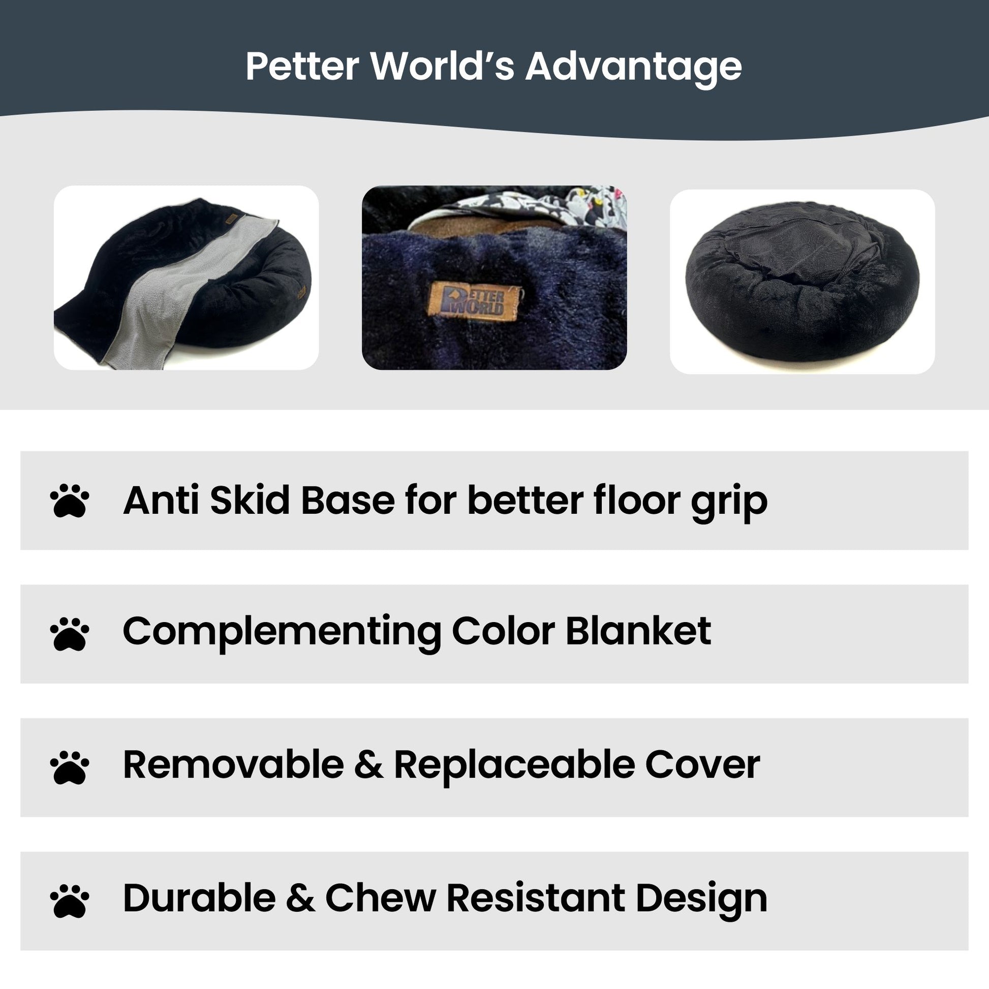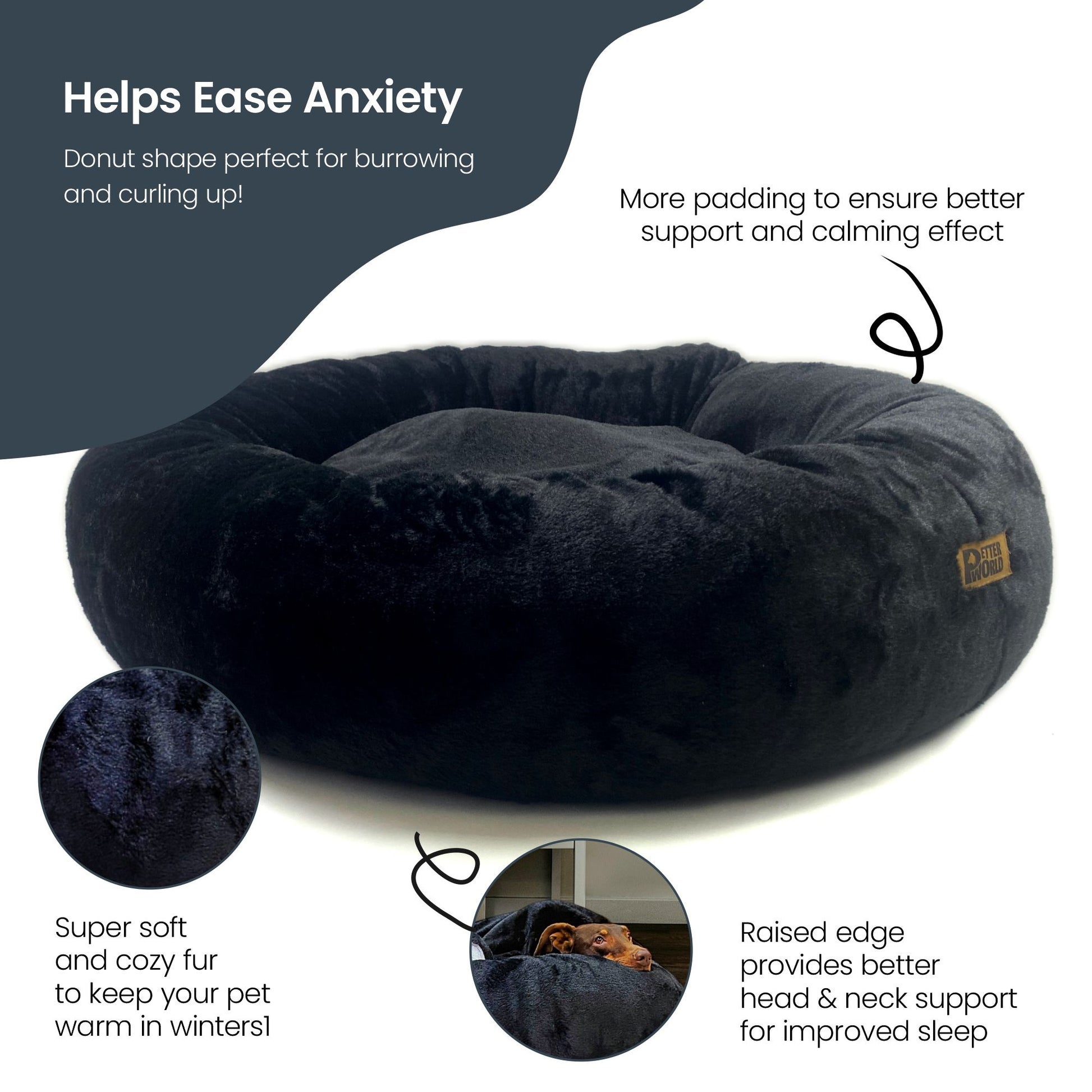 Anxiety-Relieving Donut Bed for Cats & Dogs with Free Reversible Blanket