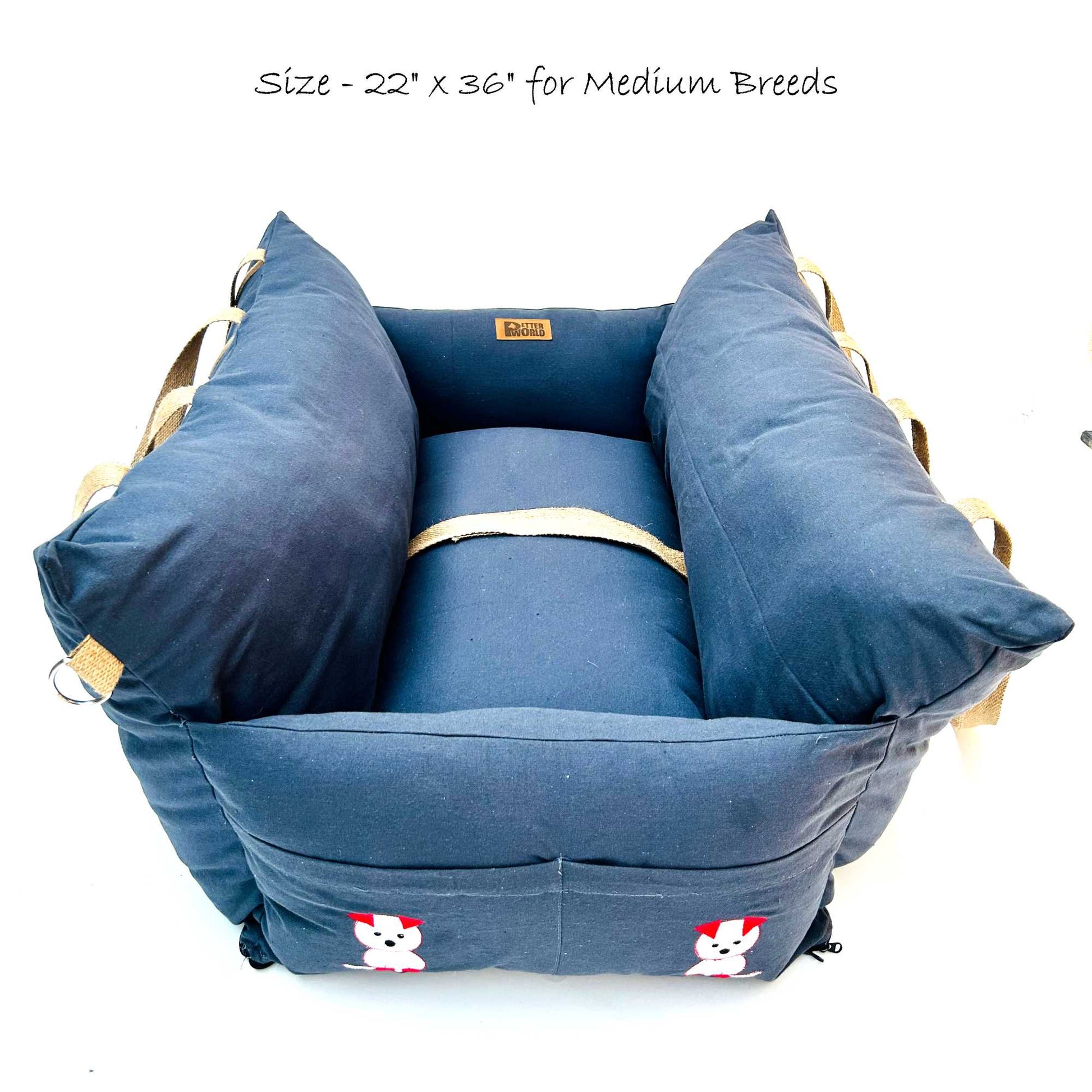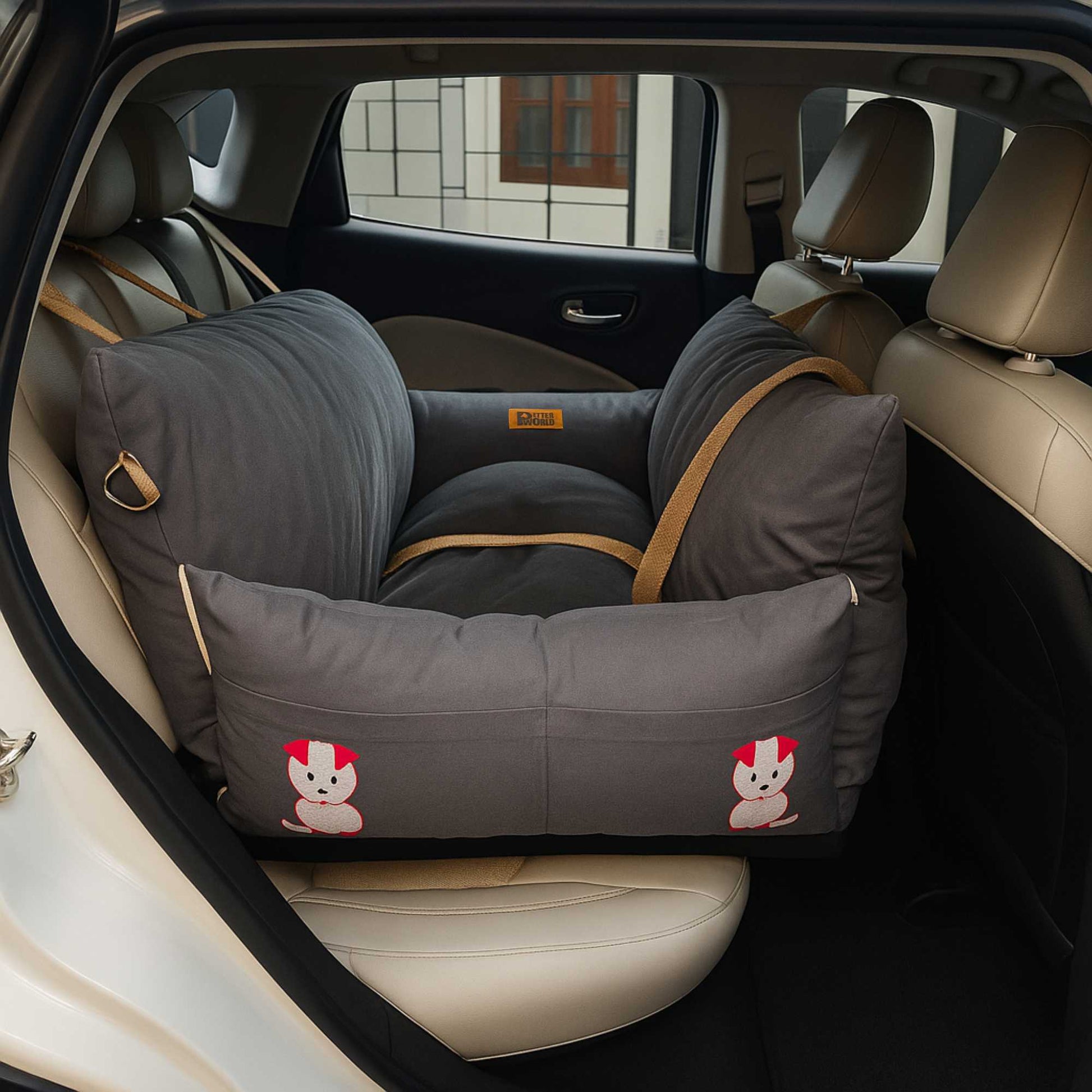 Dog Car Travel Bed with Safety Leash – Washable, Secure & Comfortable (3 Sizes Available)