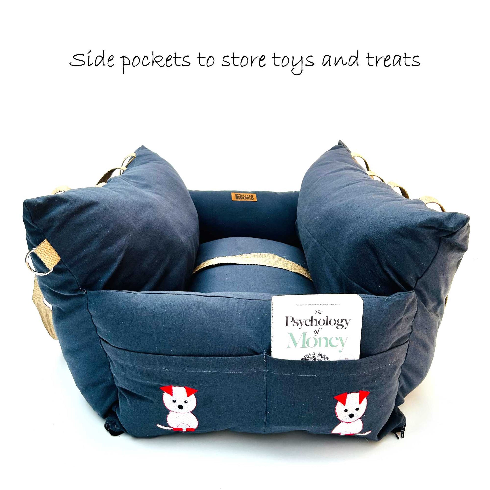 Side pockets for toys, treats, and essentials for hassle-free trips.