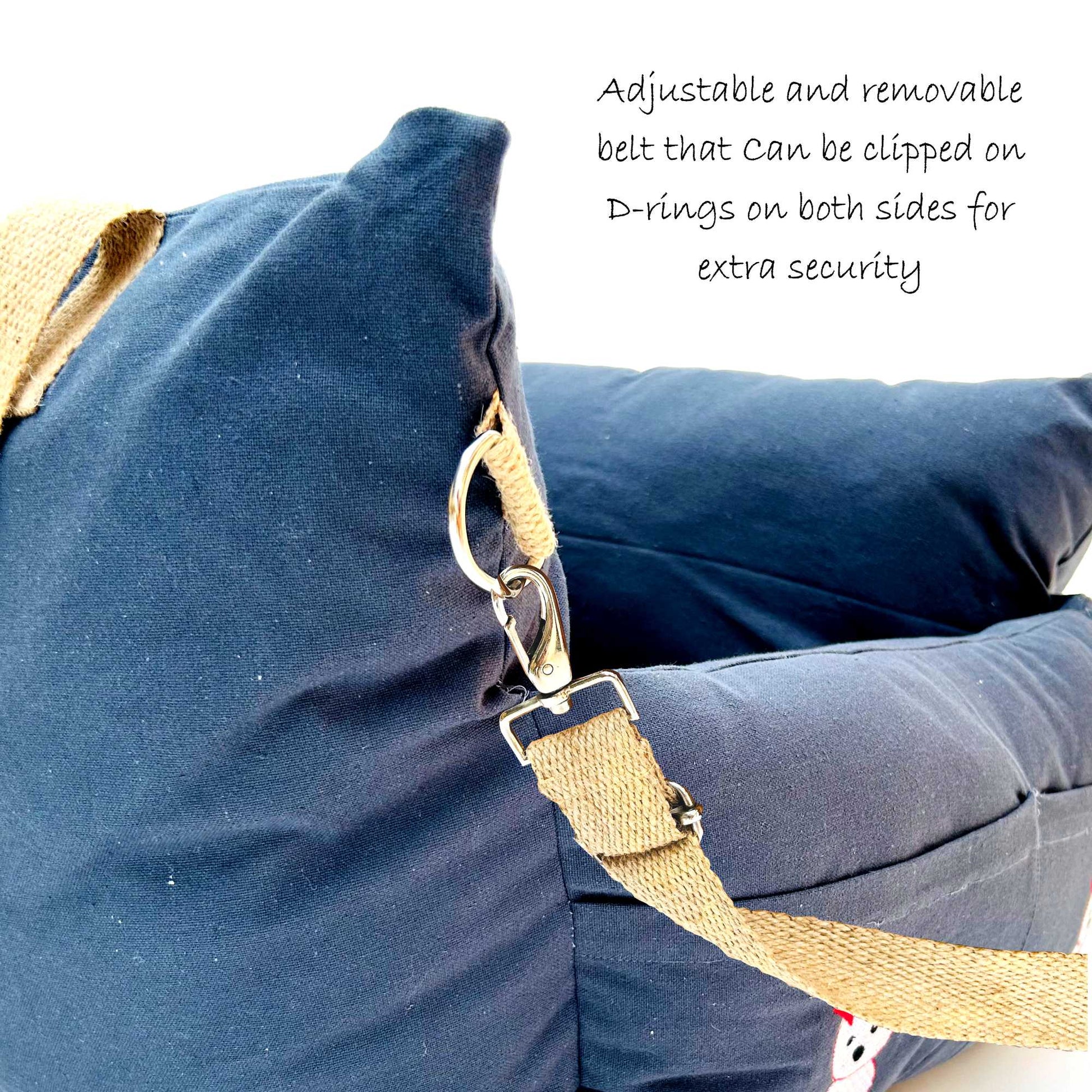 Adjustable handles with strong D-ring attachments allow you to easily and safely secure the bed to car seats.