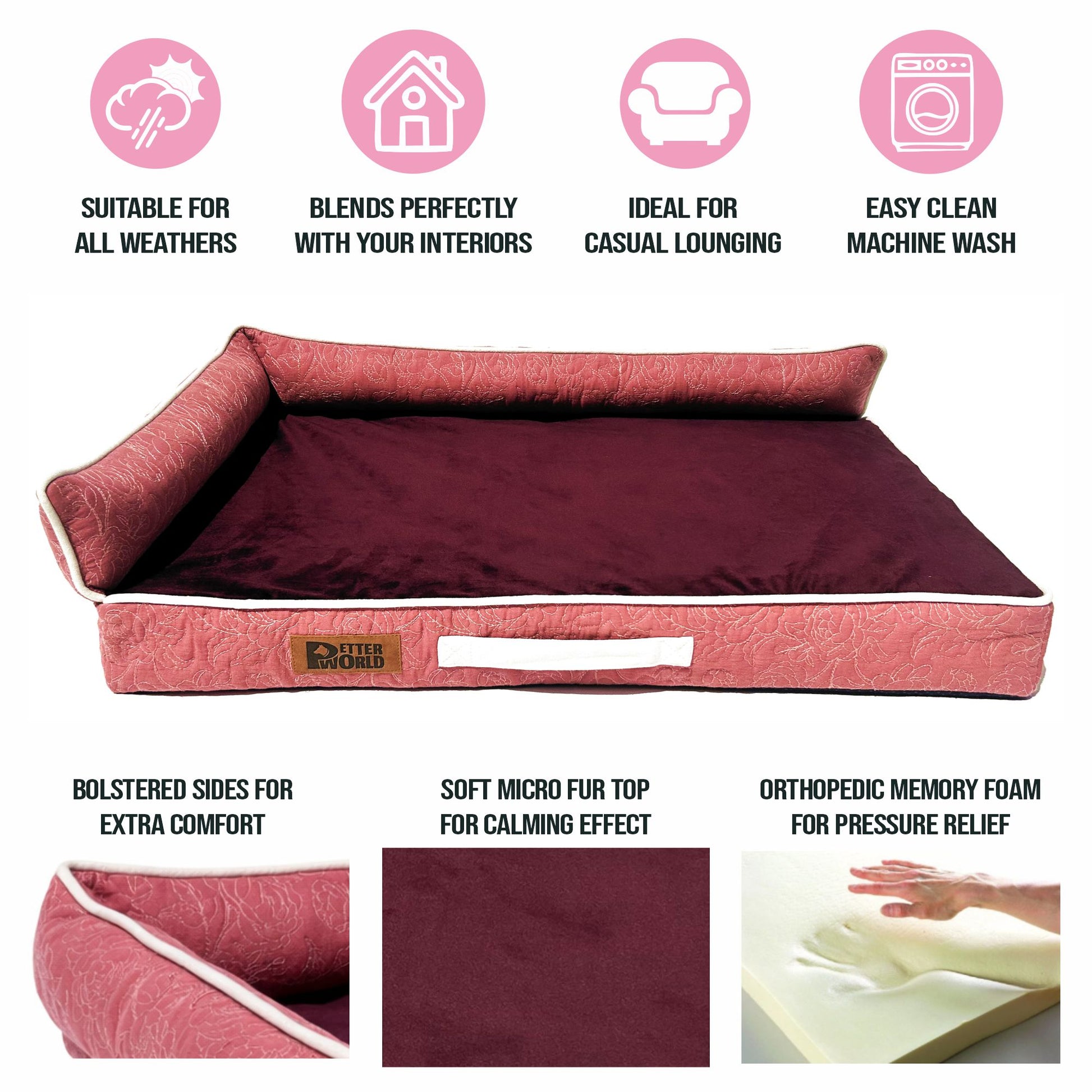 The Petter World LowRise Sofa is a thoughtfully engineered orthopedic memory foam dog bed designed for preventive joint care, senior dogs, and large breeds.