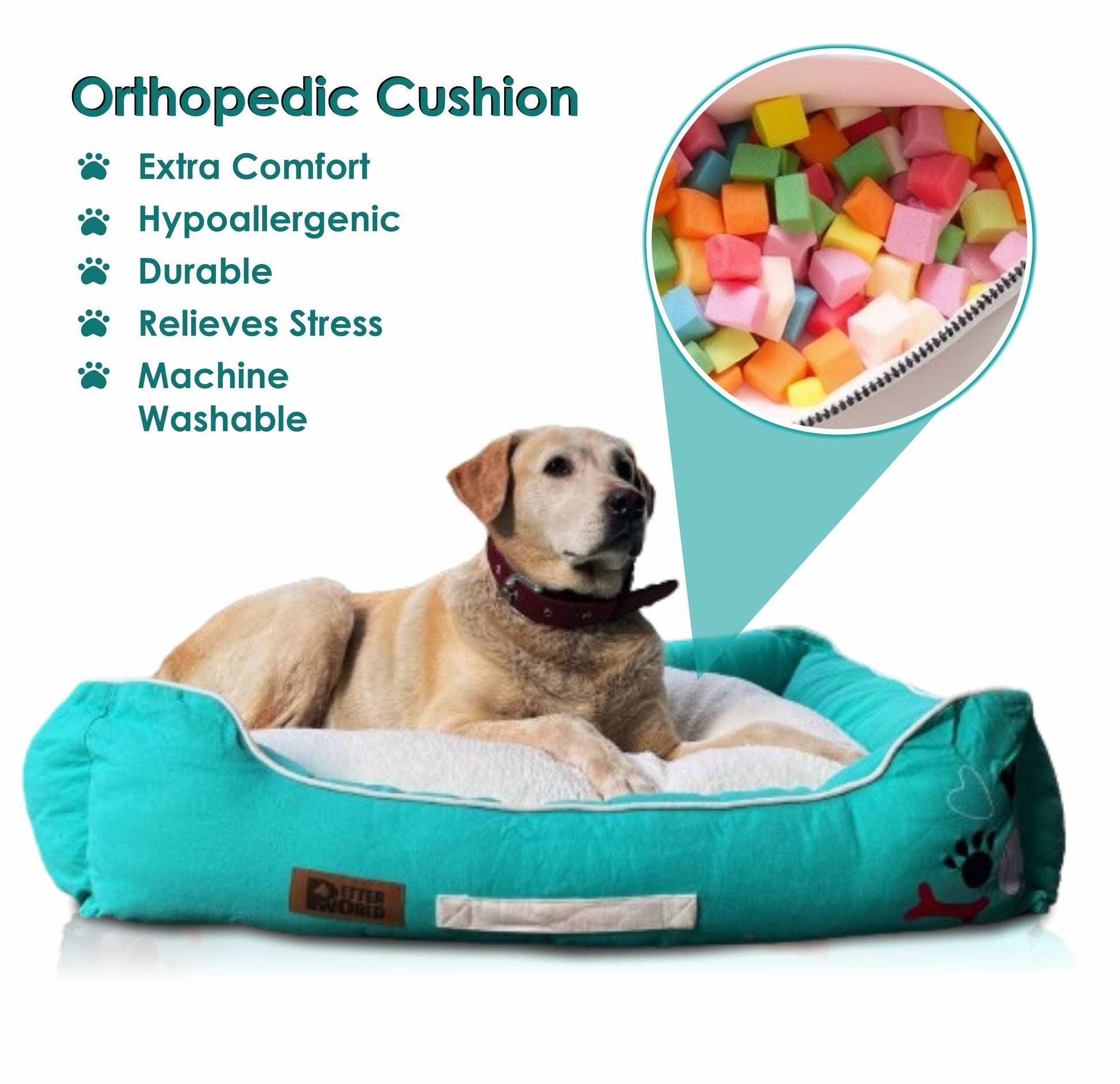 PetterWorld Lit pour chien en toile de coton ultra luxueux tous temps avec coussin amovible en fourrure Sherpa pour un effet apaisant, turquoise :