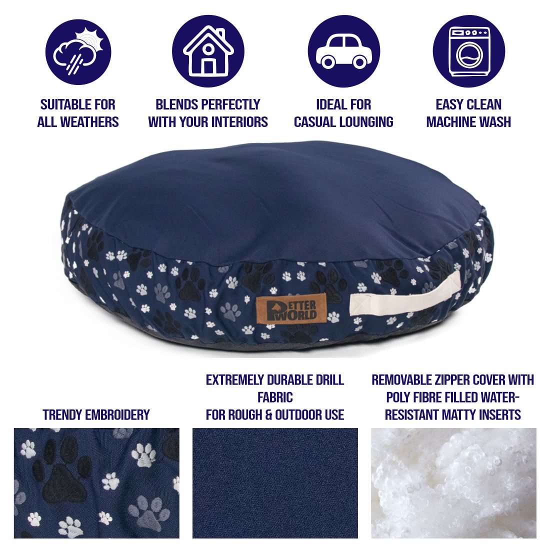 Petter World outdoor Artisanal Round Cushioned Bed with Water & Dust resistant Washable Cover, Ensign Blue: