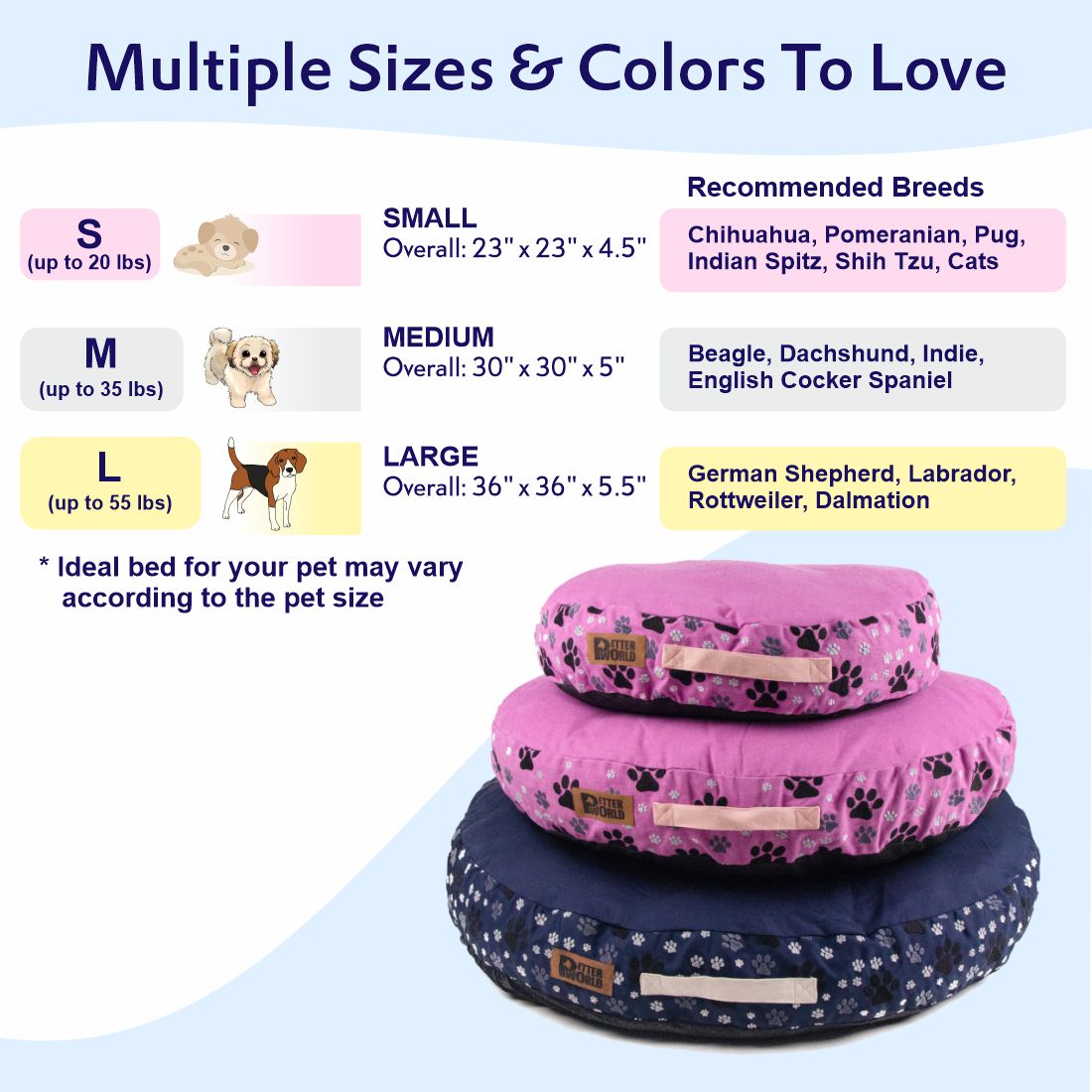 - PETTER LIVING - Finally, your furry friend can stretch, curl up, and rest comfortably all on one bed; Thick, quality-assured foam & fiber inserts and soft outer fabrics make Petter World beds the only option for dog & cats of all breeds & sizes.