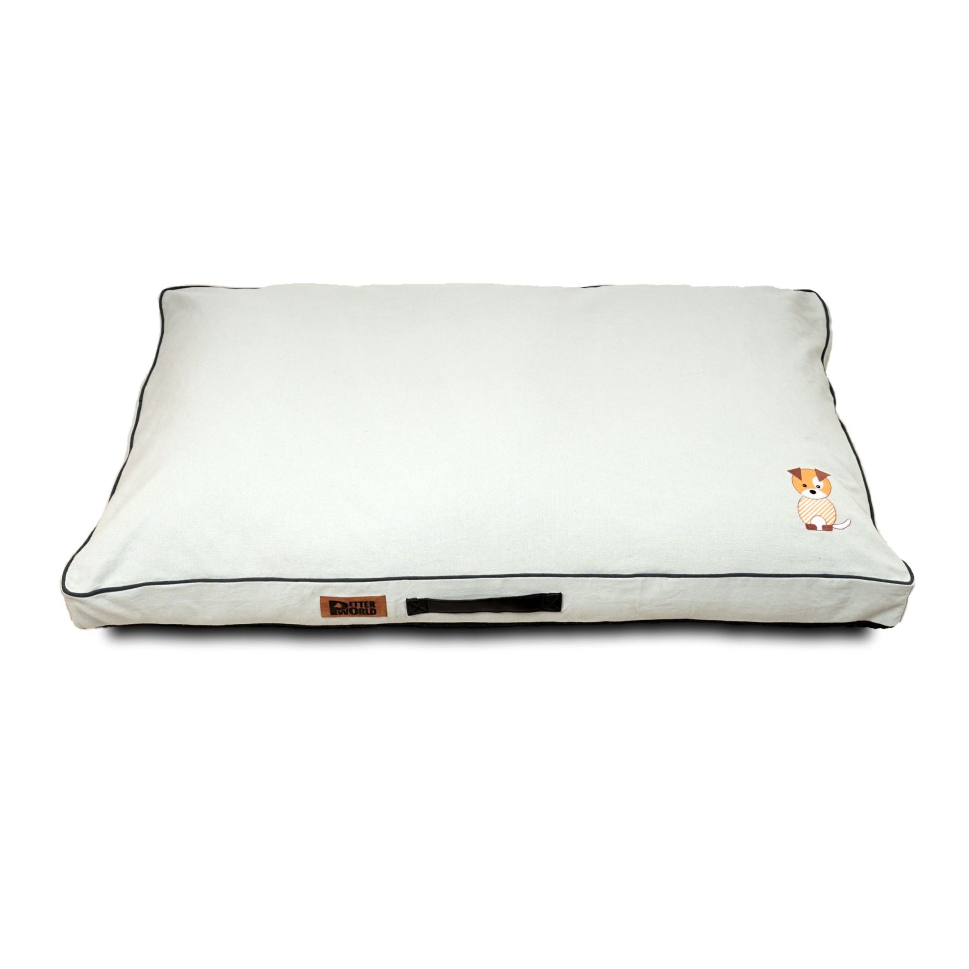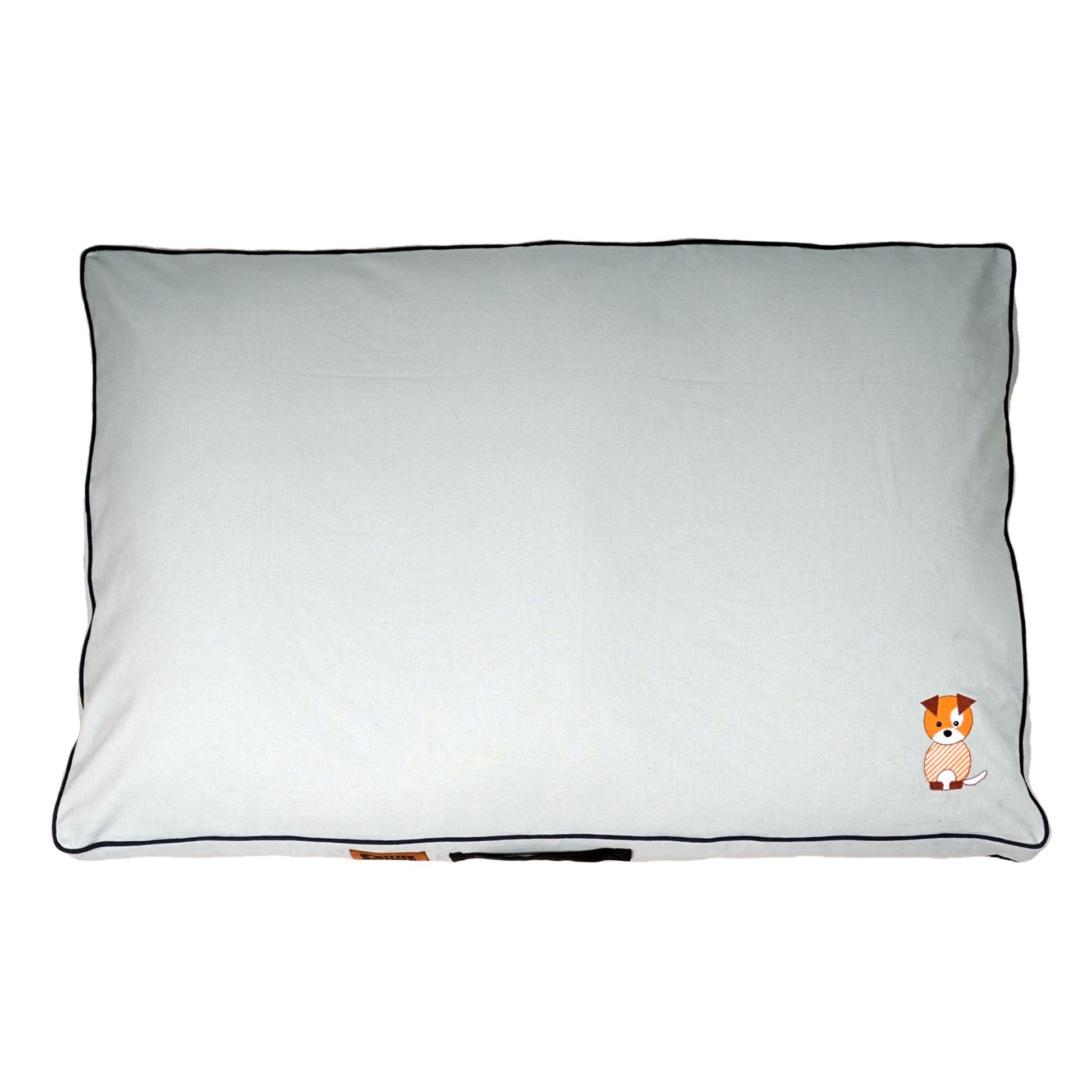 Affordable and cozy pet beds made from thick cotton canvas, filled with soft cushioning for everyday comfort. Features a cute embroidered pup design and comes in jumbo size for large breeds.