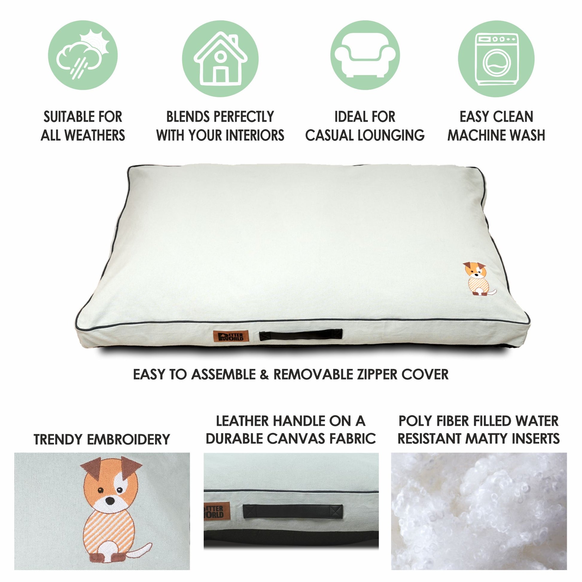- WASHABLE COVER - Petter World’s covers are machine washable & smell-resistant; the fabric is designed to withstand rubbing, digging & nesting; Easily remove the zippered cover for shrink-free washing, stain cleaning, or even quick replacement. Equipped with a full-coverage inner liner to help protect the filling from accidents