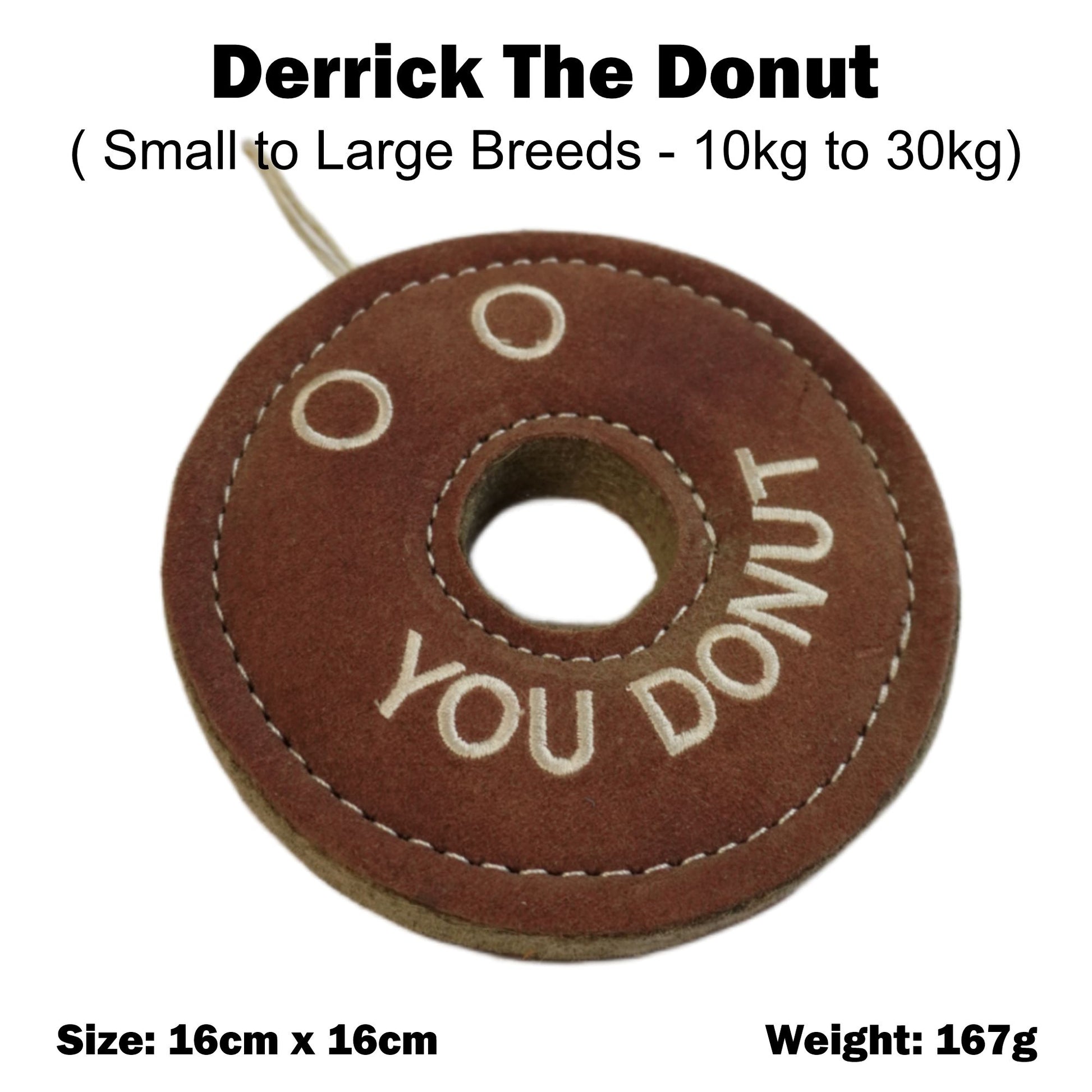 Make playtime sweeter than ever with Derrick the Donut! This thick suede leather toy gives your pup a delicious way to chomp and chew, and is shaped just like a classic donut. So what are you waitin' for? Let the fun rise with Derrick!