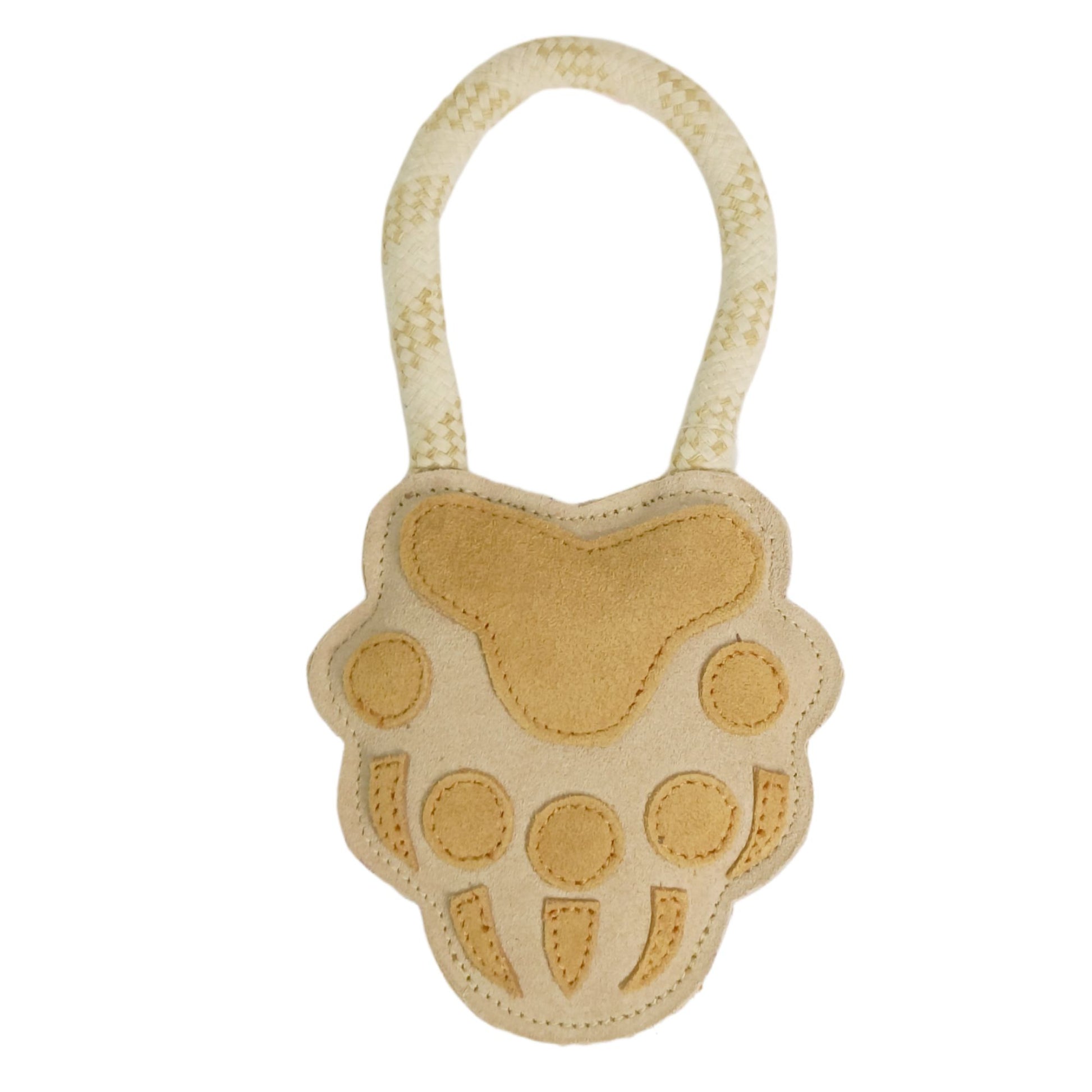 Fetch some fun with this Dog Footprint! Crafted from suede leather, this paw-print shaped toy has a Cotton Jute rope filled with jute coir for remaining active and entertained. Perfect for some juicy chew time, this will keep your pup paw-sitively entertained!