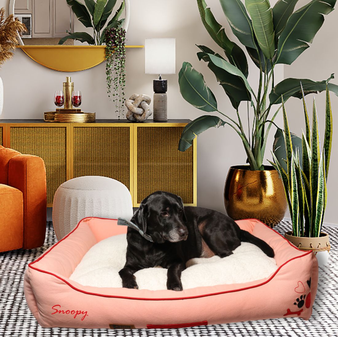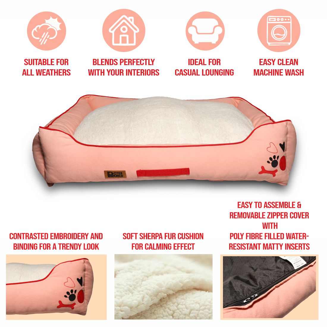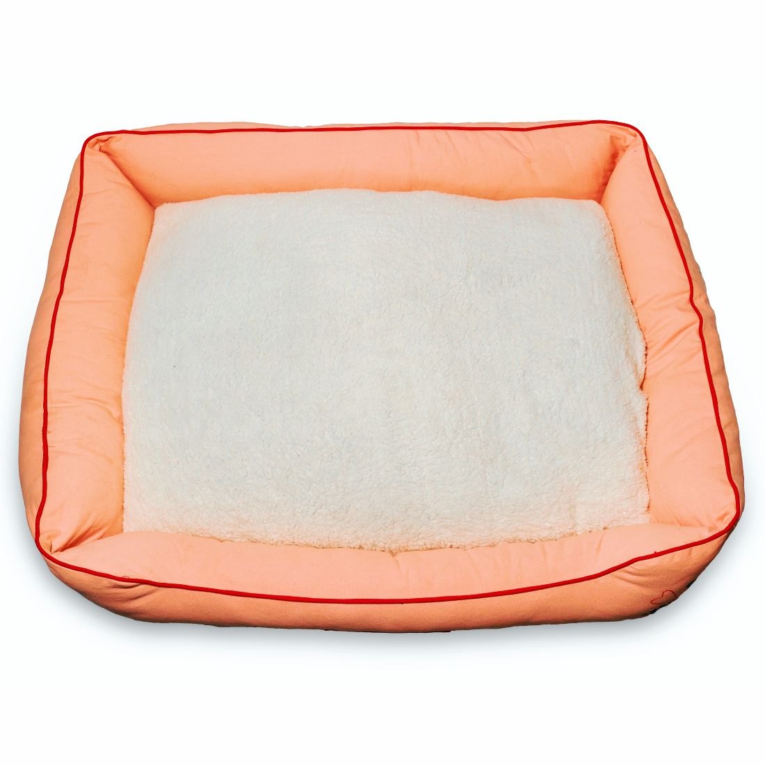 PetterWorld All weather Ultra Luxury Cotton Canvas Lounger Dog Bed with Removable Sherpa fur Cushion for calming effect, Peach Pearl: