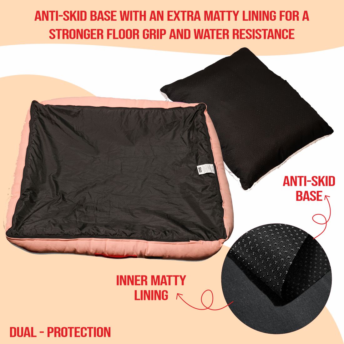 Our comfortable and stylish Lounger Beds are a classic addition to your Pet wardrobe. Made from highly durable cotton canvas on the sides and soft Sherpa cushion on top, this bed is soft, roomy and at the same time strong & sturdy. The thick durable fabric provides ample resistance to sharp claws. It is a luxuriously comfortable bed with padded perimeter that provides support and comfort for restful sleep or lounging. It is great for pets of all ages & breeds, and comes available in multiple colors and sizes, so you can select the right bed that suits your home décor as well. Gift your pet a comfortable resting time with our Luxury Lounger Pet Bed.