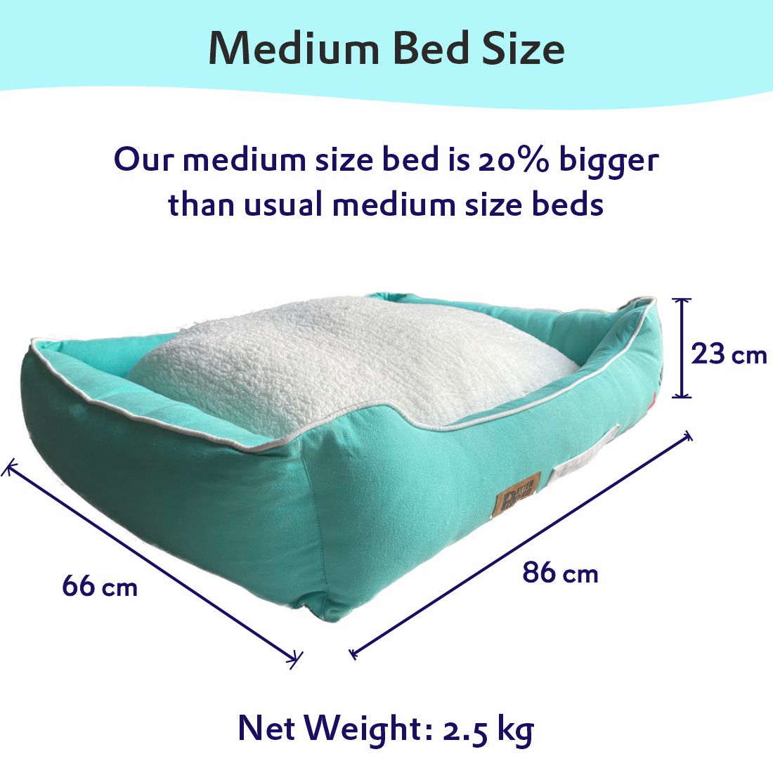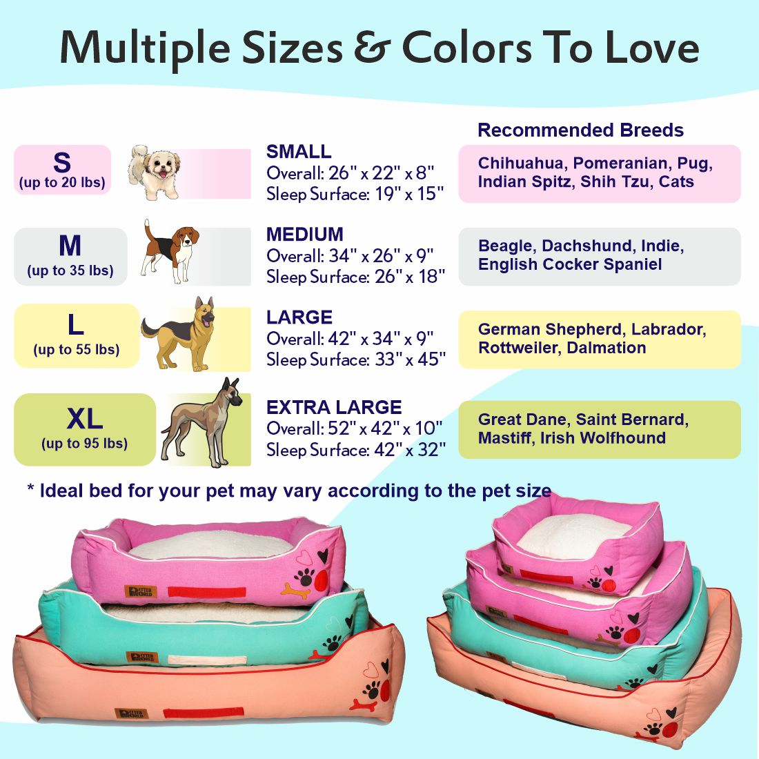 Our comfortable and stylish Lounger Beds are a classic addition to your Pet wardrobe. Made from highly durable cotton canvas on the sides and soft Sherpa cushion on top, this bed is soft, roomy and at the same time strong & sturdy. The thick durable fabric provides ample resistance to sharp claws. It is a luxuriously comfortable bed with padded perimeter that provides support and comfort for restful sleep or lounging. It is great for pets of all ages & breeds, and comes available in multiple colors and sizes, so you can select the right bed that suits your home décor as well. Gift your pet a comfortable resting time with our Luxury Lounger Pet Bed.