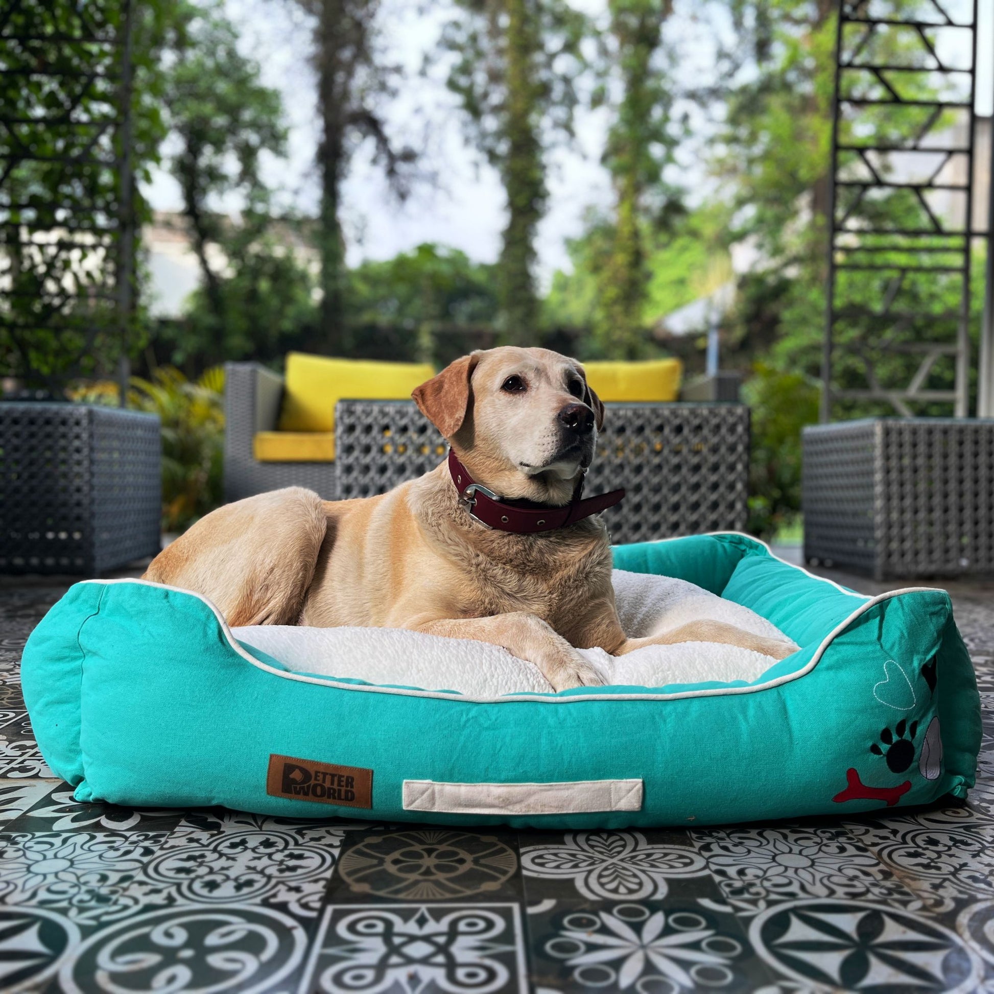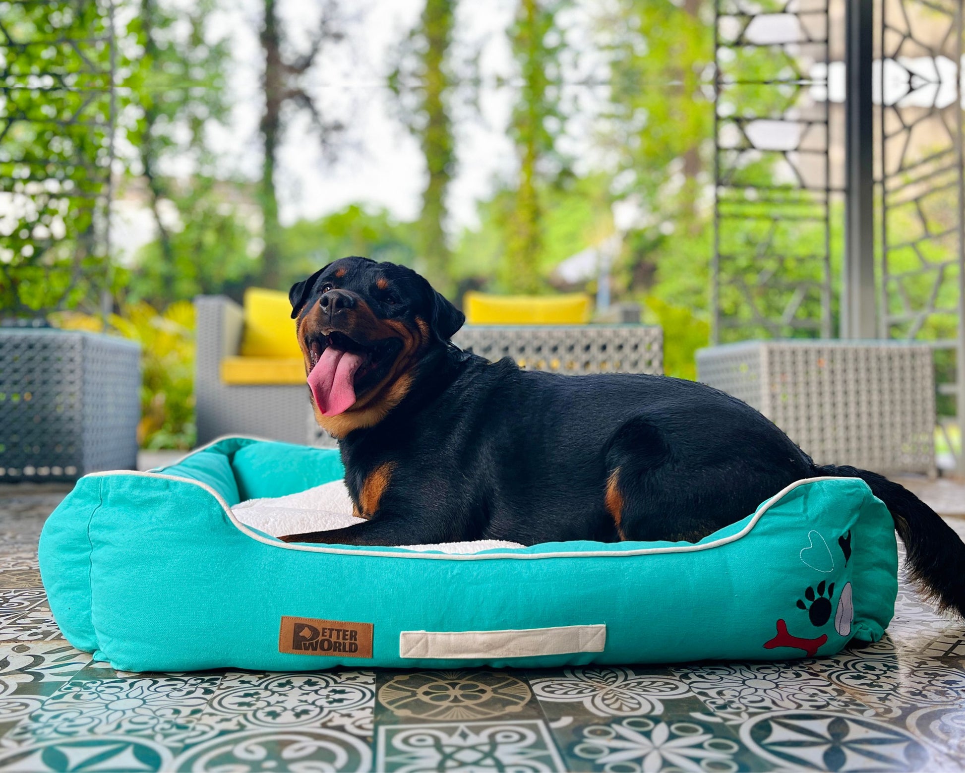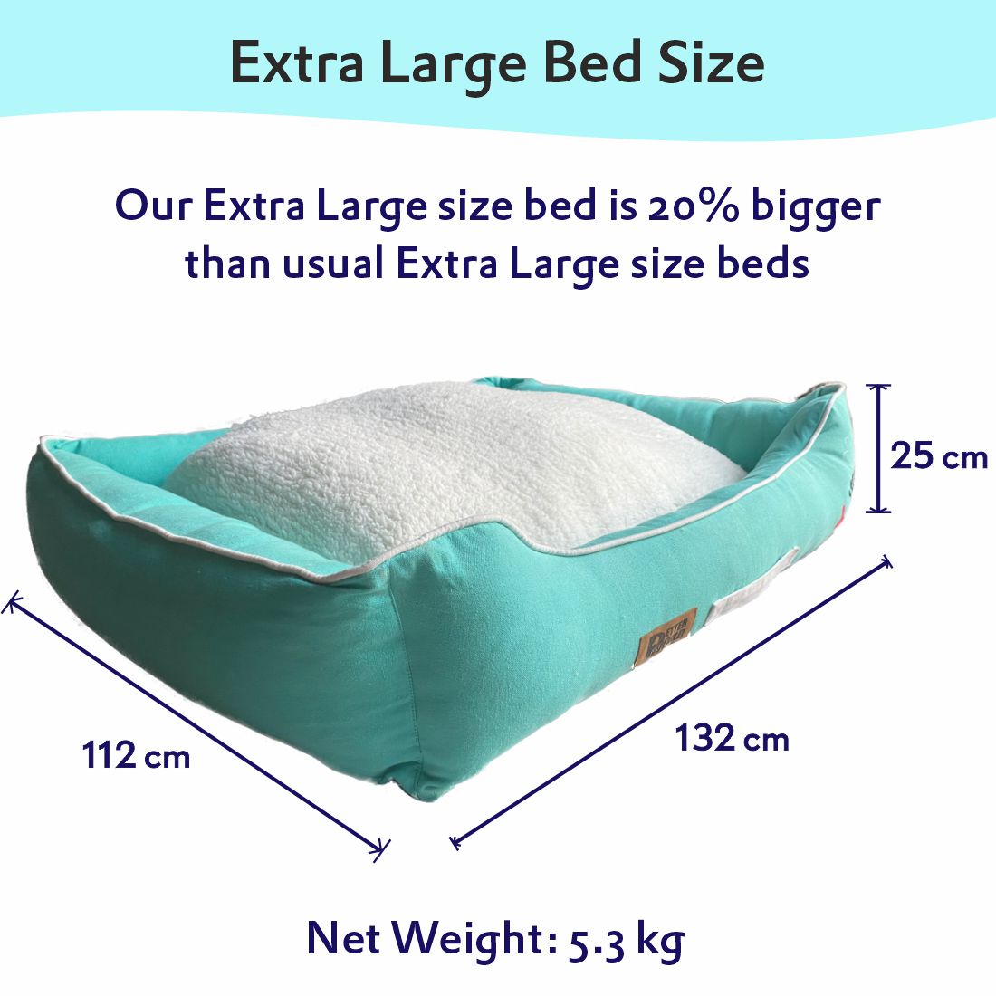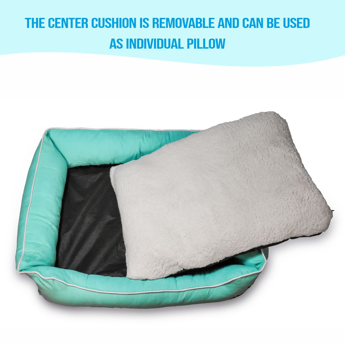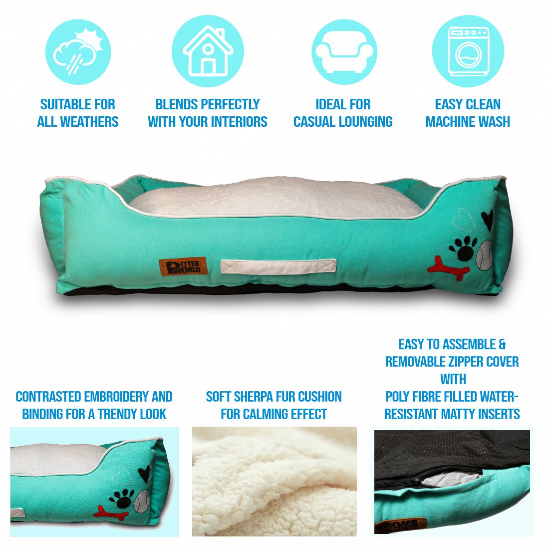 PetterWorld All weather Ultra Luxury Cotton Canvas Lounger Dog Bed with Removable Sherpa fur Cushion for calming effect, Turquoise: