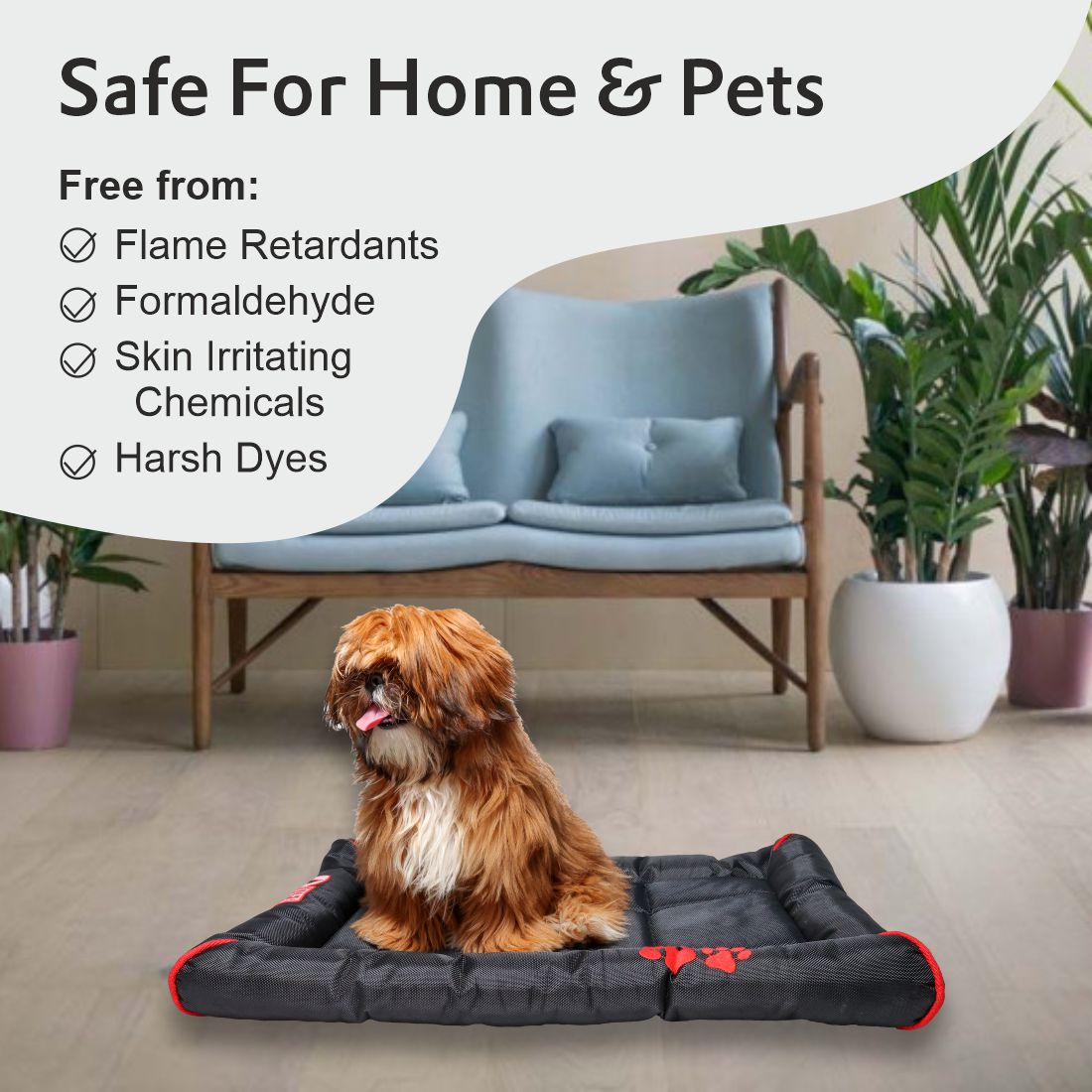 Introducing Petter World's Waterproof Monsoon Mat in Jet Black, the best monsoon mat for dogs in India. Made from durable drill fabric, this cushioned dog mat is completely waterproof and dust resistant, ensuring your pet stays dry and comfortable. Ideal as a waterproof crate mat, its anti-skid bottom prevents slipping while adding a vibrant touch to your home décor. This mat is easy to clean, making it a perfect choice for both indoor and outdoor use. Invest in this durable dog mat to provide a cozy and dry space for your furry friend throughout the monsoon season.