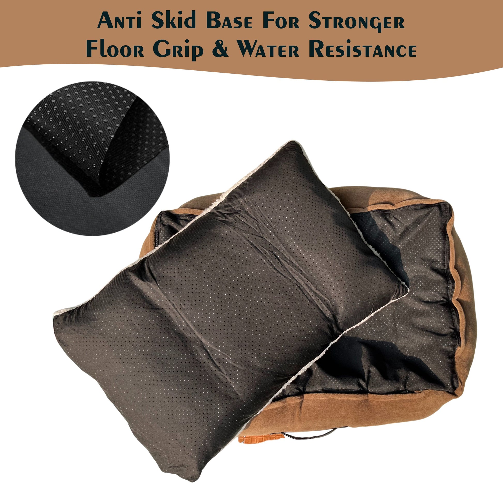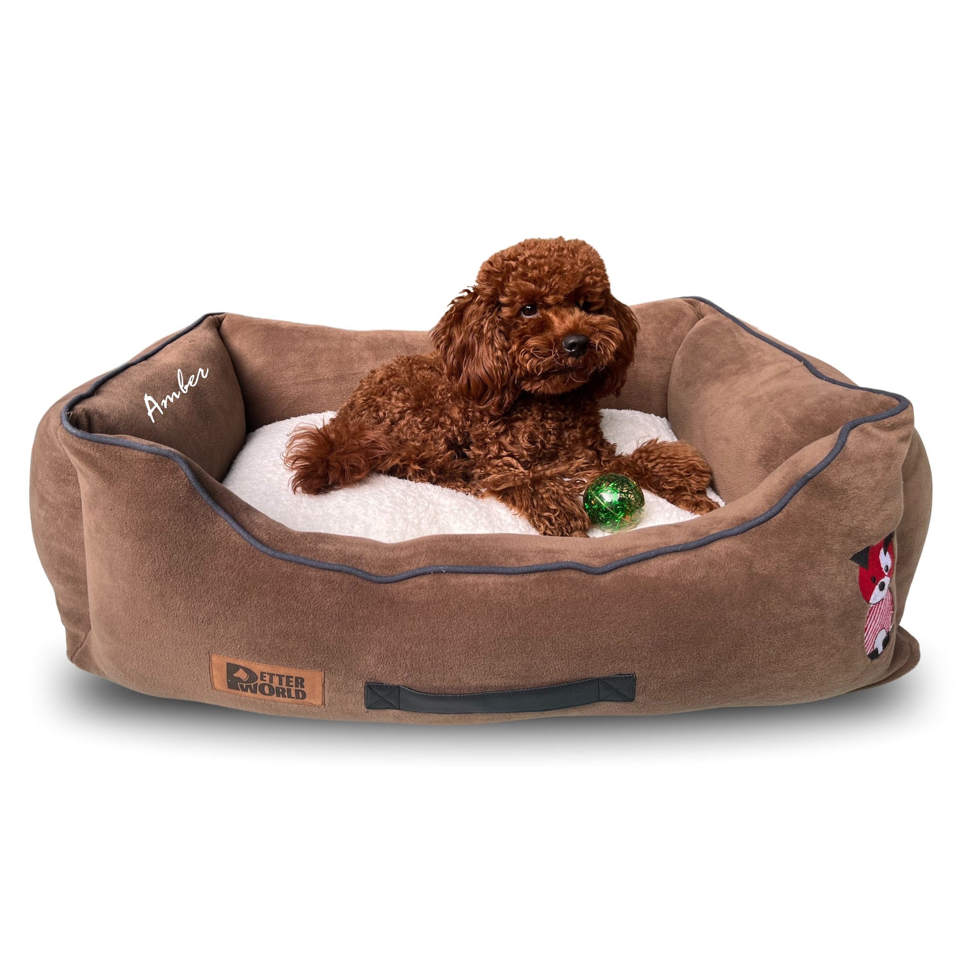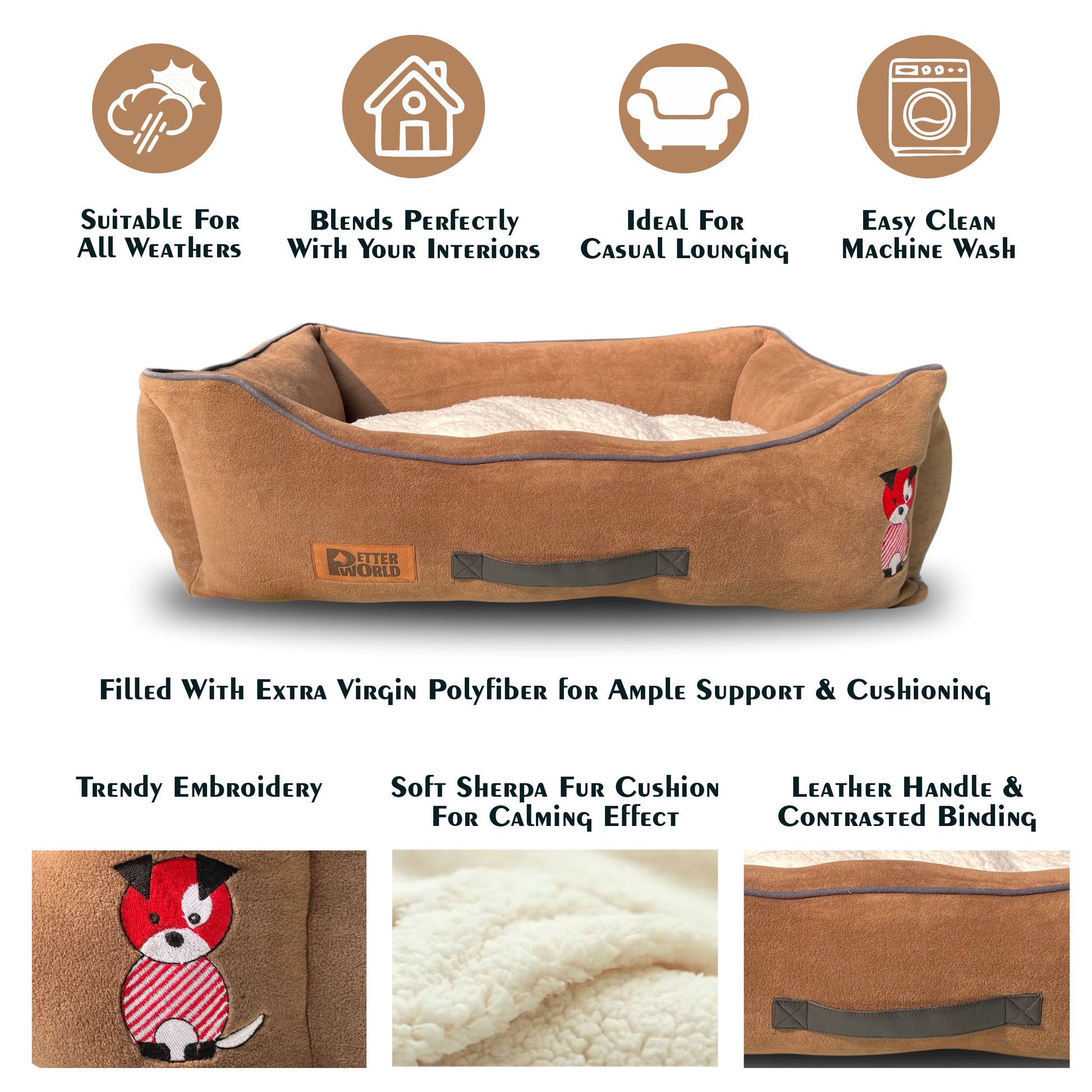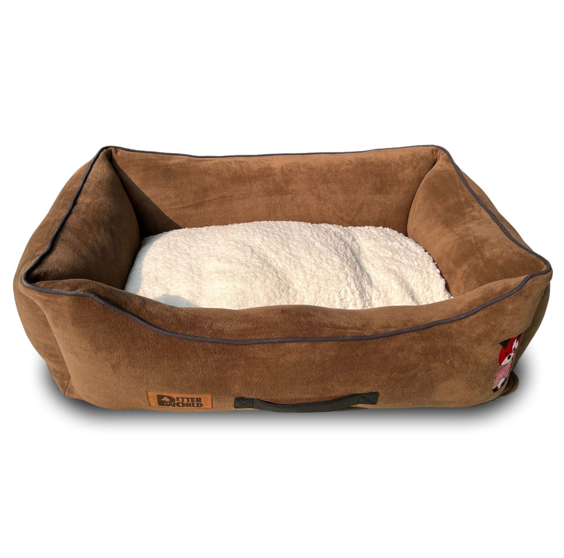 PetterWorld Ultra Luxury Soft Crystal Velvet Lounger Dog Bed with Removable Cushion for calming effect, Mocha Brown: