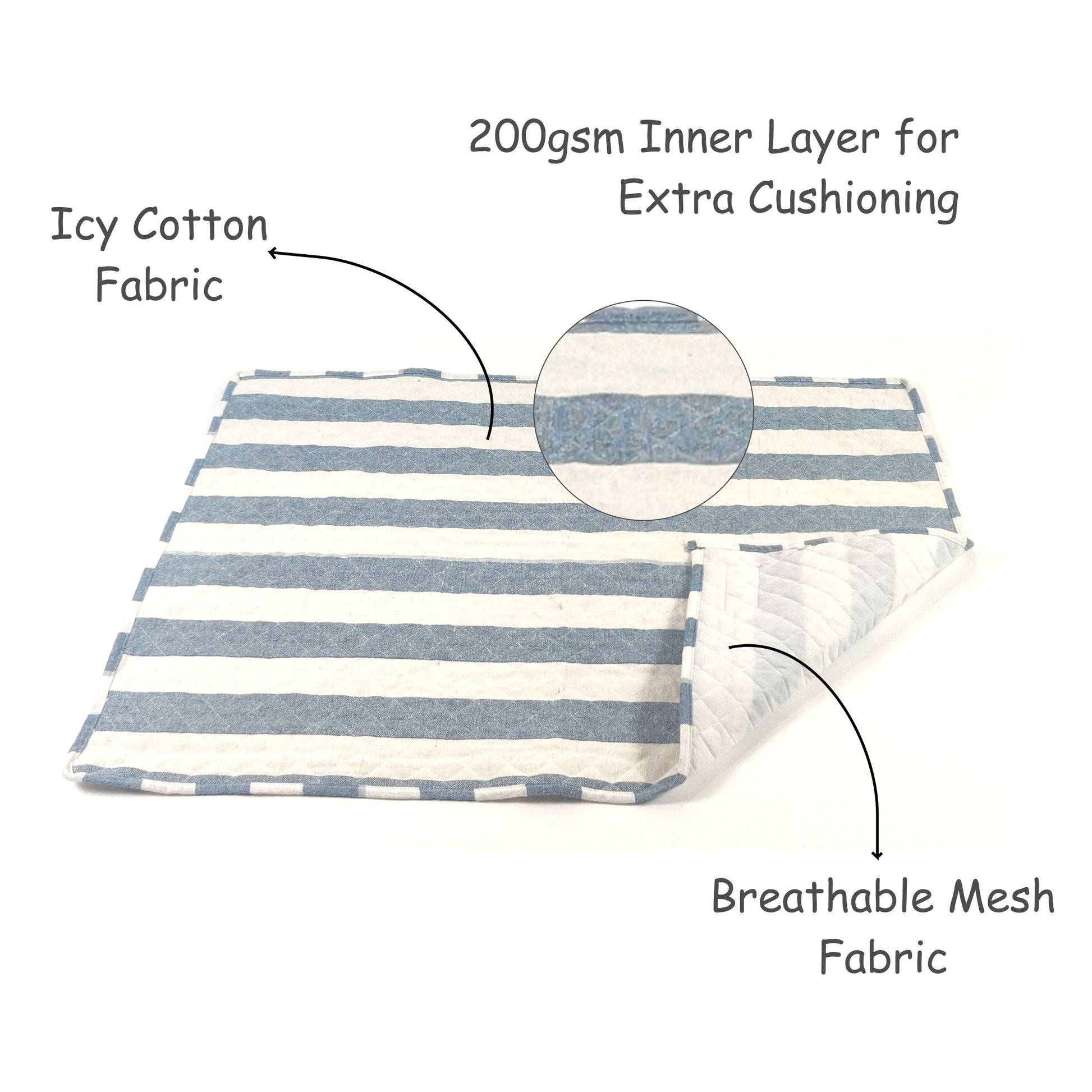 Multipurpose Quilted Cooling Mat with Icy Cotton Fabric & Breathable Mesh Base, Blue Stripes