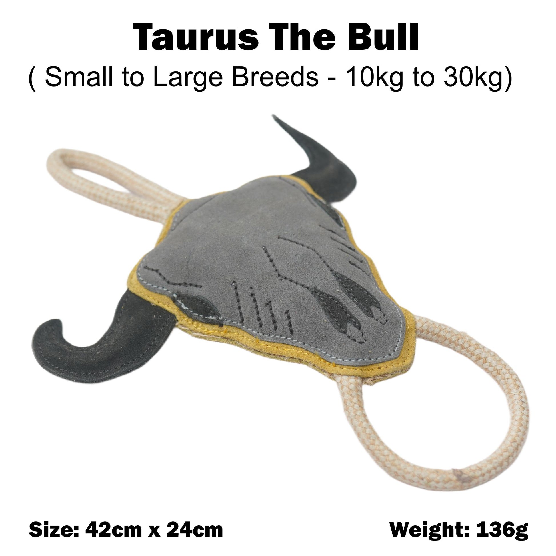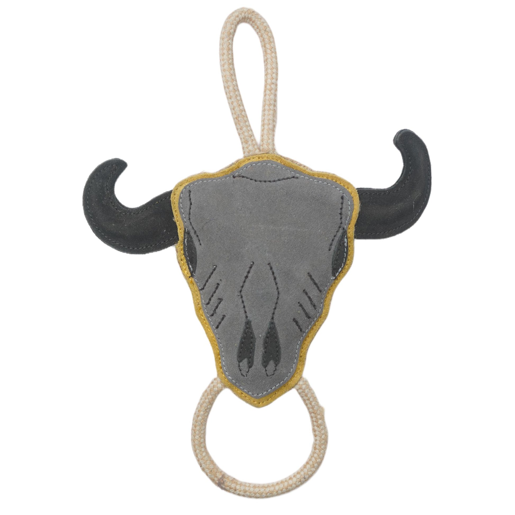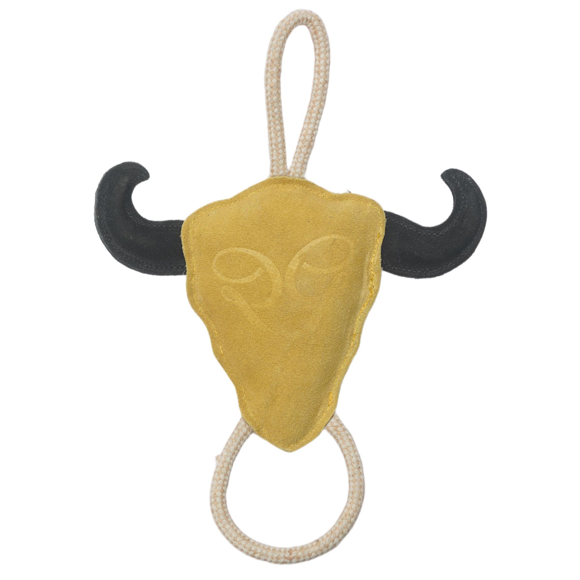 This durable and classy-looking Taurus the Bull doggy toy is exactly what your pooch deserves! Featuring a bull face shape made from luxe suede leather and twisted rope and filled with Jute coir ,it has horns! Your pup can be the king of the castle (or backyard!), and proudly show off their regal new toy!